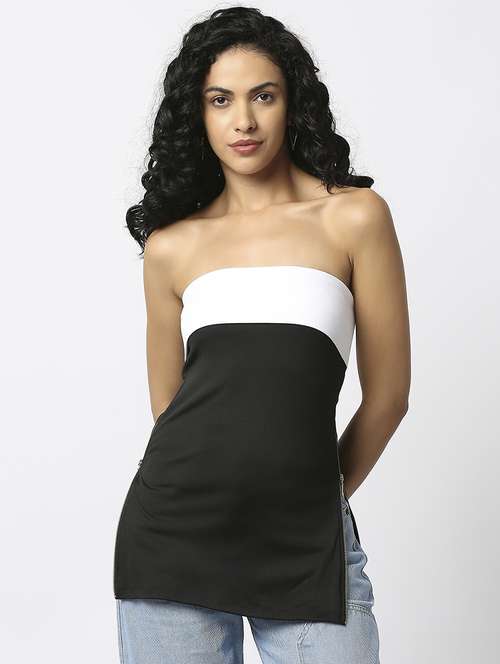 women black & white zip detailed tube top