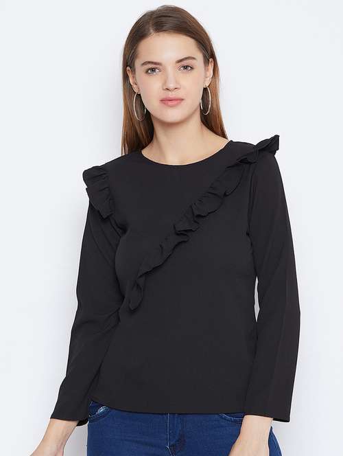 - » women's ruffle round neck top