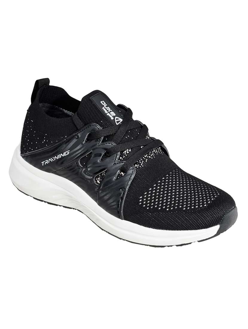 This pair of sports shoes with lace-ups styling, textured knitted panels and patterned rubber outsole promise ease of movement and outstanding durability.
