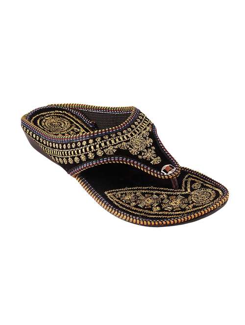 black fabric ethnic sandals