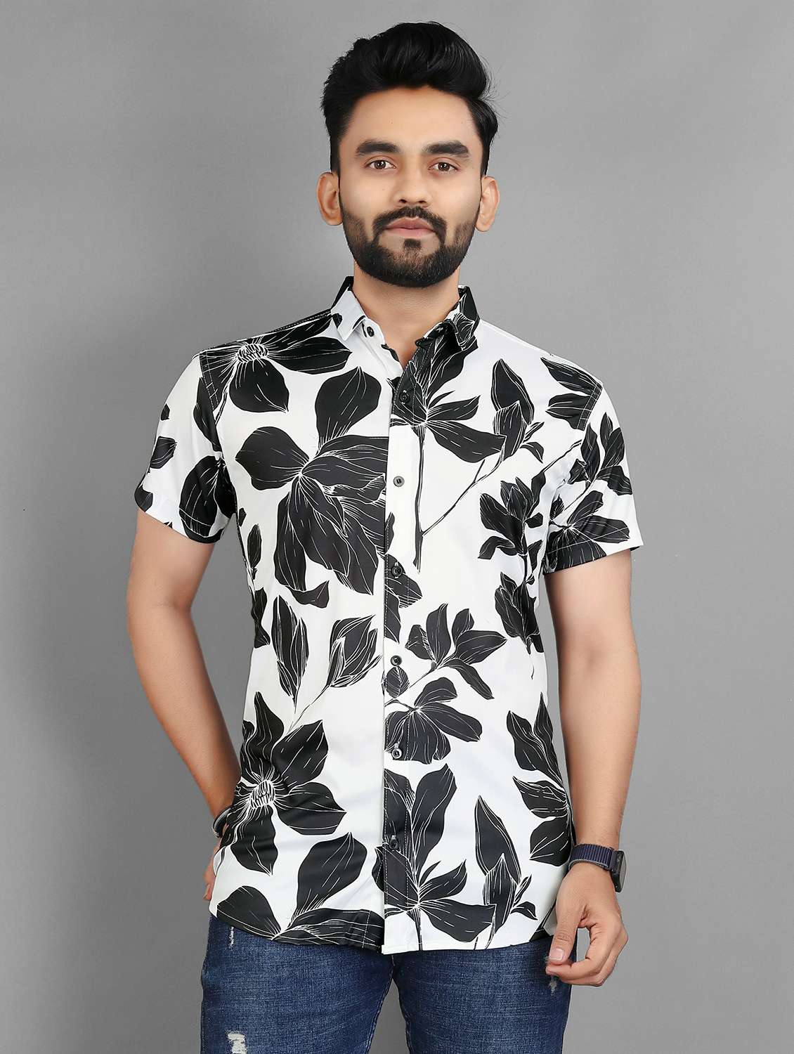 men floral short sleeve regular fit casual shirt