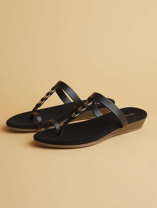 black faux leather slip on kolhapuris - 17591918 - Very Small Image - 1