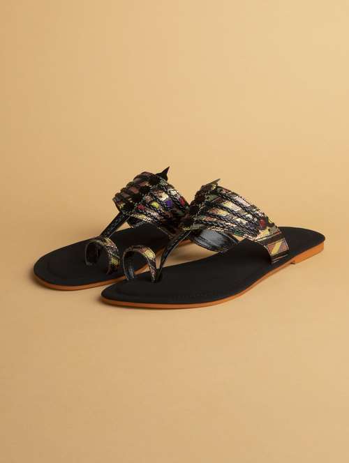 black slip on sandals