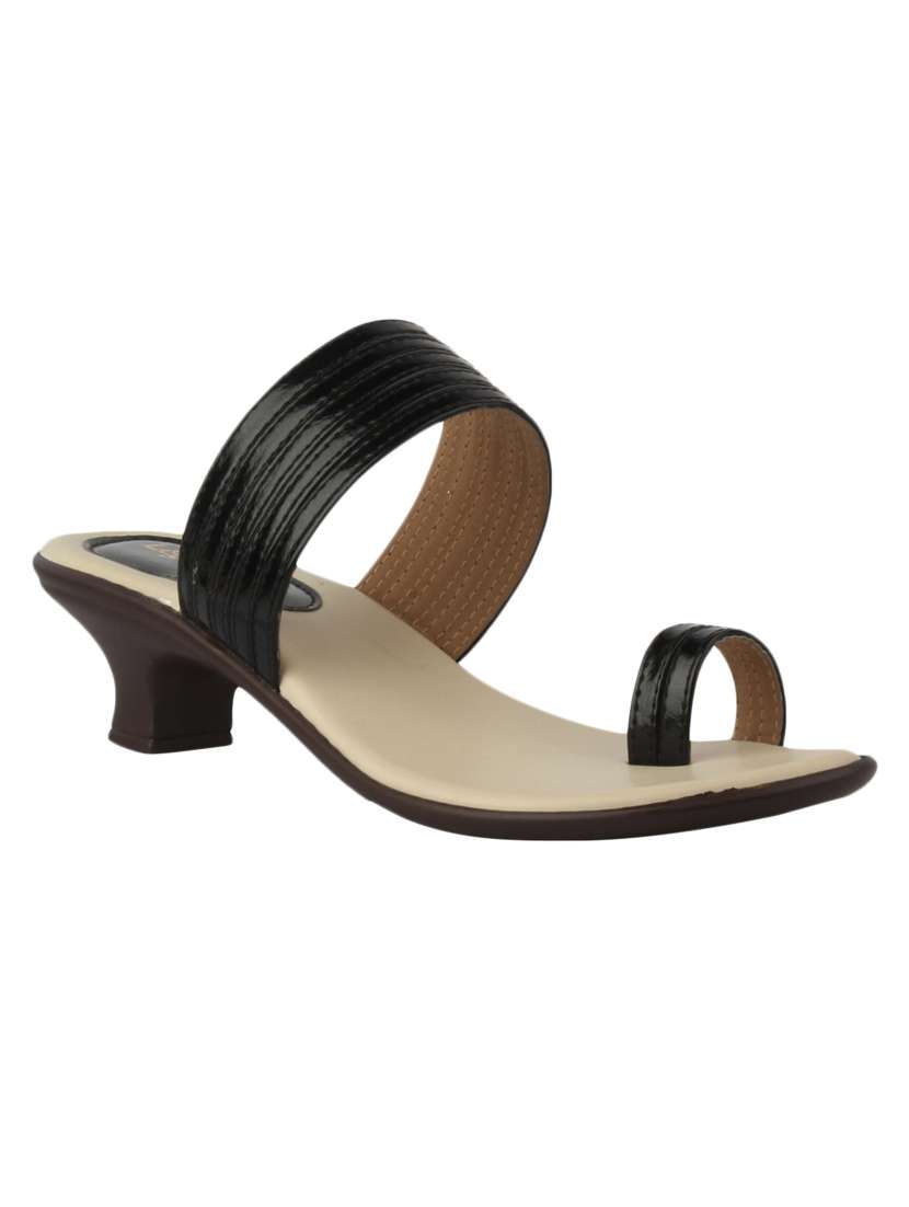 black faux leather slip on sandals