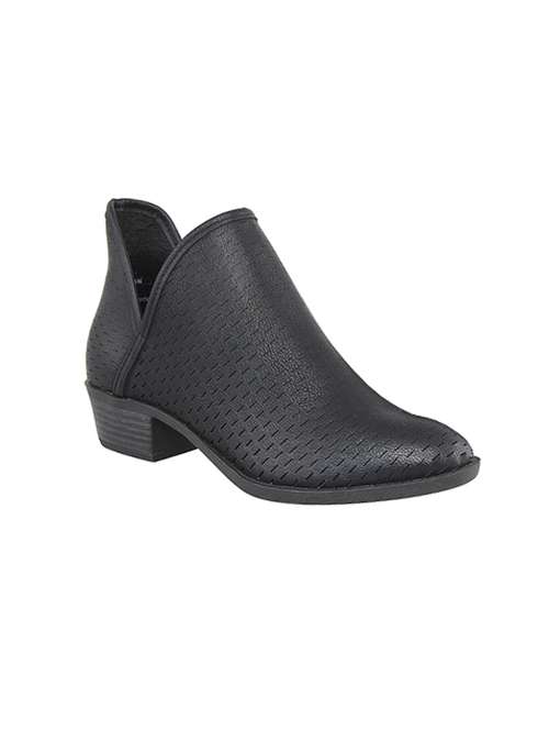 black faux leather ankle boot