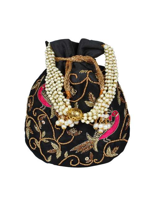 - » black faux silk ethnic potli