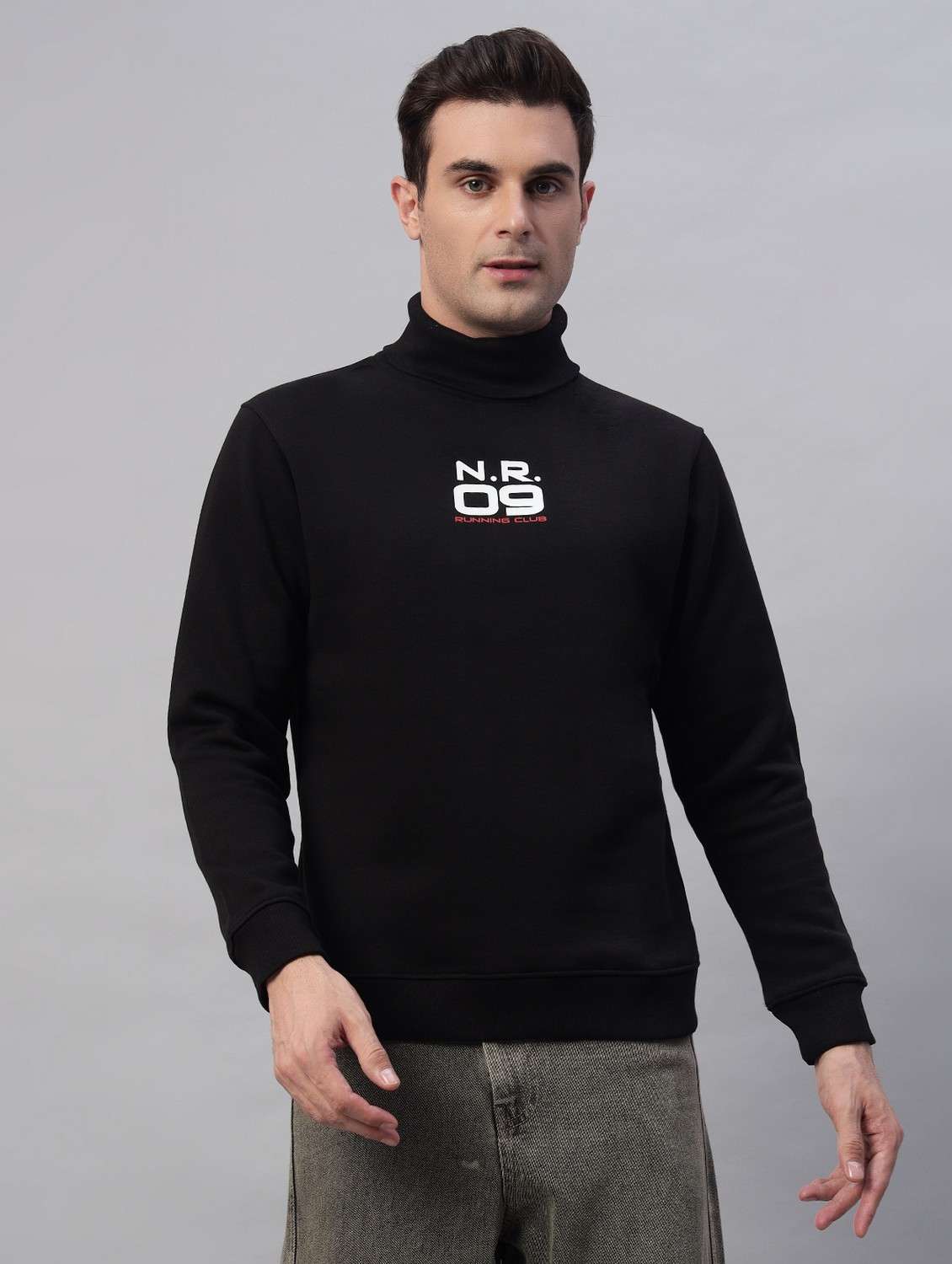 men printed long sleeves high neck sweatshirt