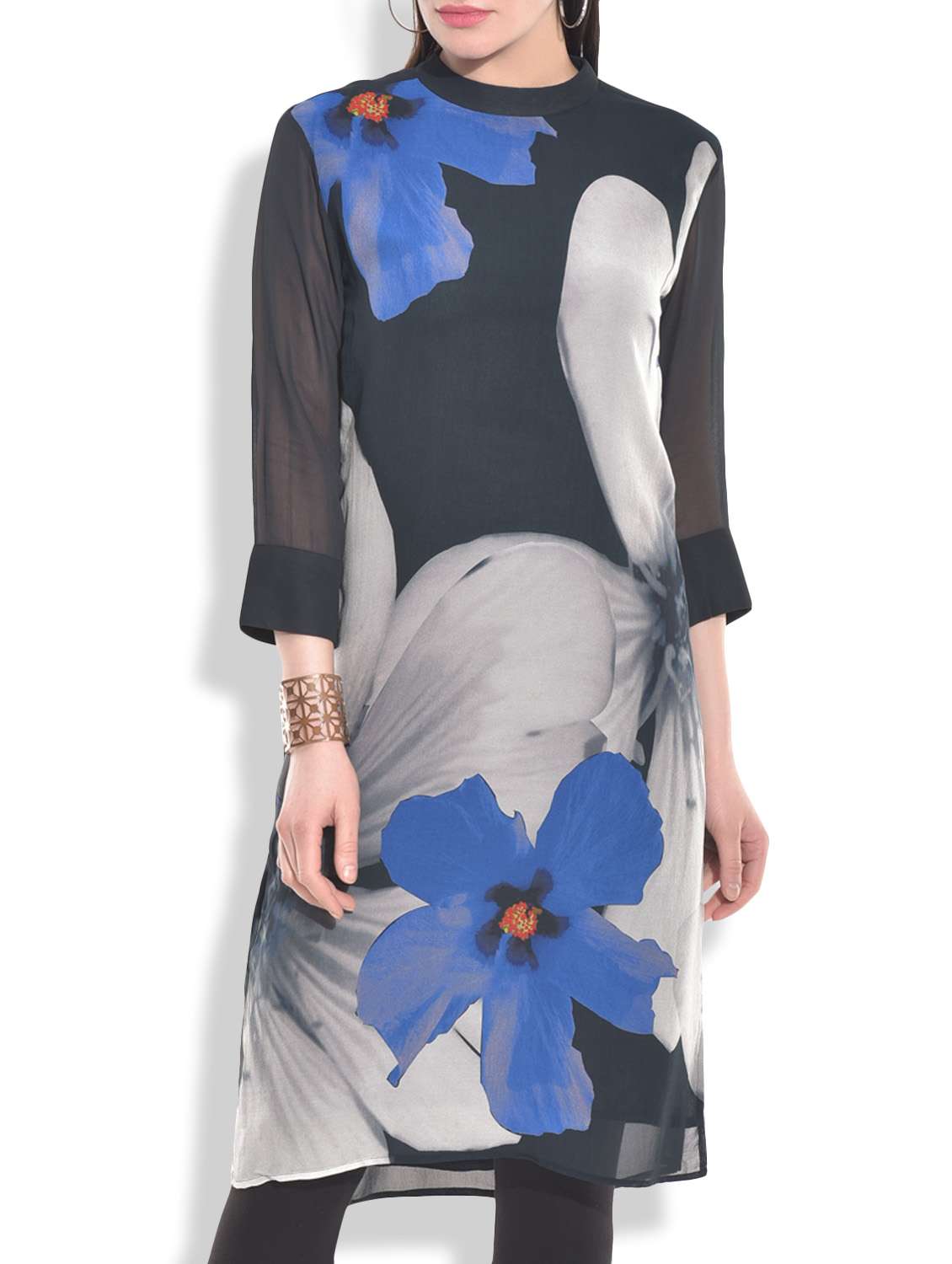 black floral printed georgette tunic