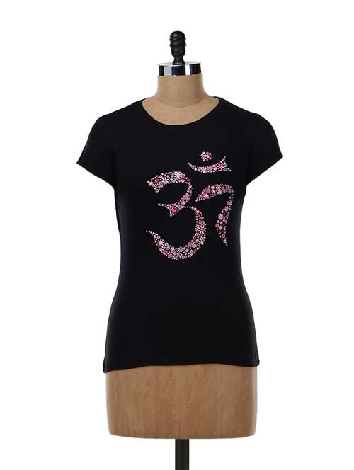 - » black 'flower pattern om' t-shirt
