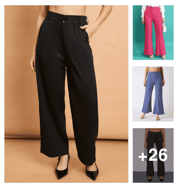 globus women black self checked design stretchable mid-rise straight fit workwear trousers