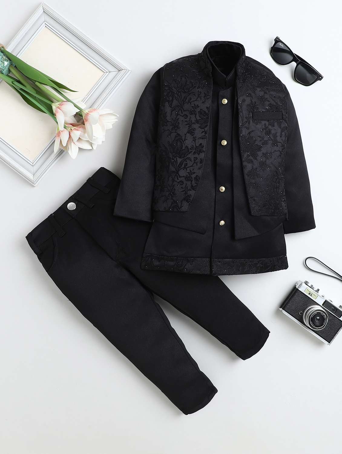 boys embroidered long sleeve sherwani set