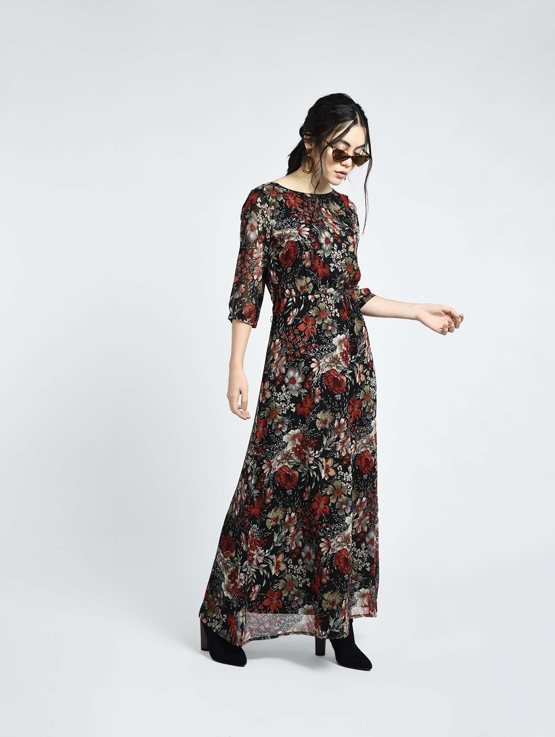 floral boat neck maxi dress