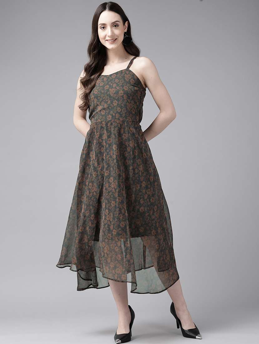 - » women black florals printed fit & flare dress