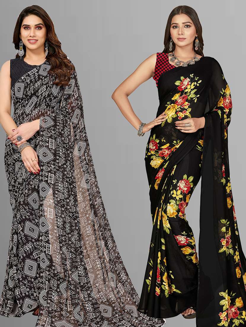 women pack of 2 casual wear sarees with blouse