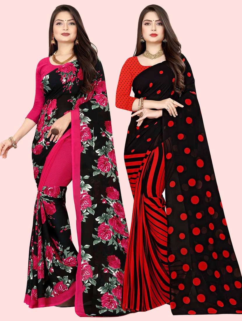 pack of 2 multi colored combo saree with blouse