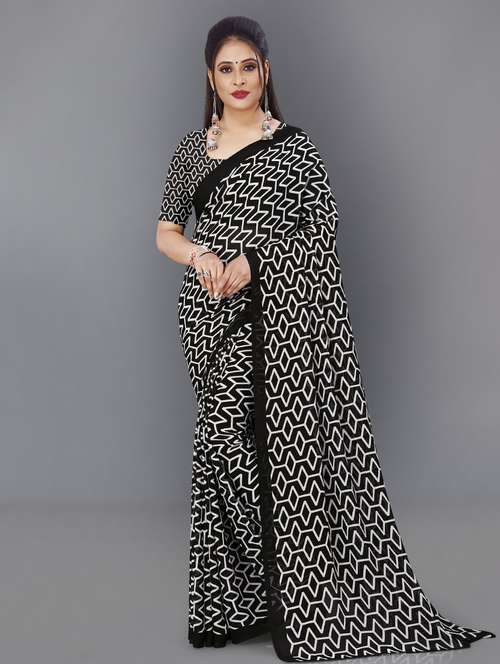 - » women black geometric printed saree with blouse