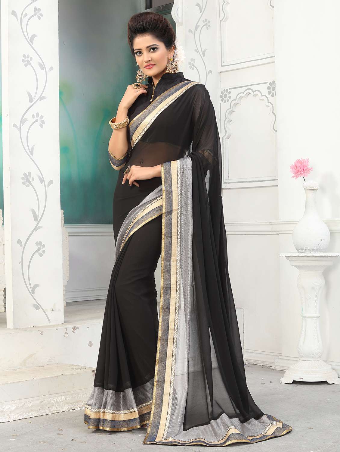 - » lace border black saree with blouse