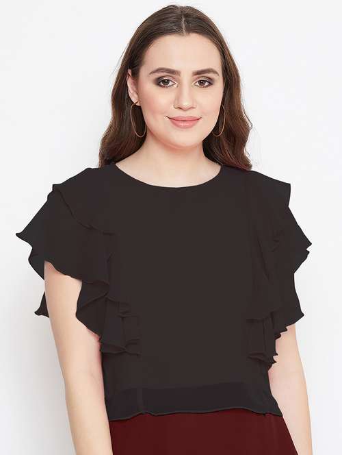 women's ruffle round neck top - 18151331 - Very Small Image - 1