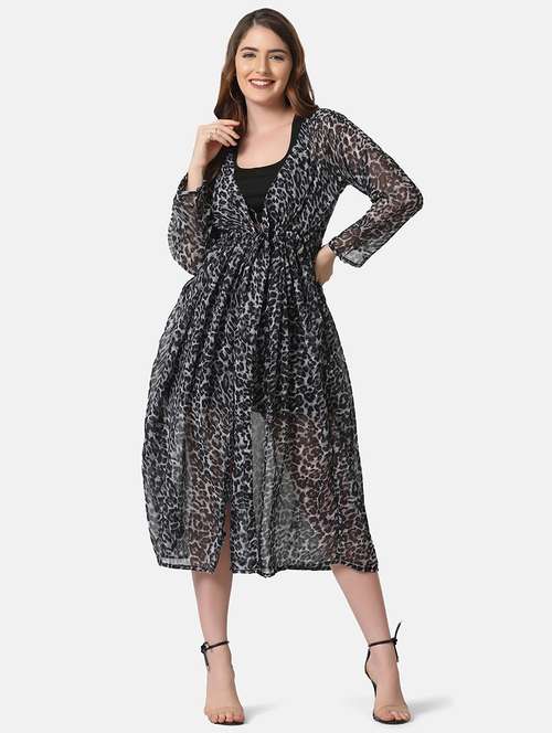 - » tie front animal print shrug