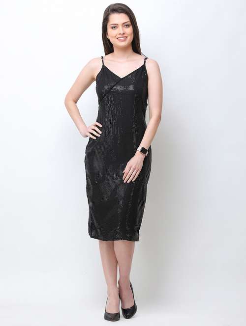 shoulder strap sequin straight dress
