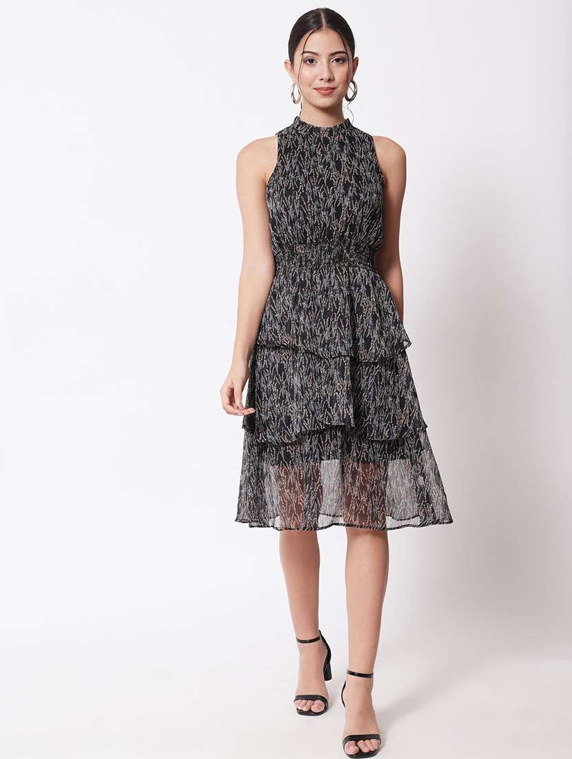- » women black printed layered dress