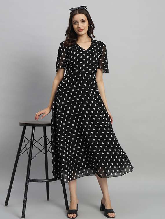 - » women polka doted puff sleeves a-line dress