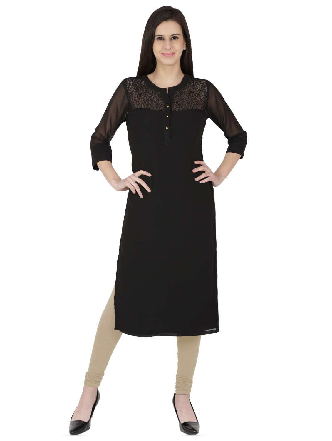 net yoke straight kurta