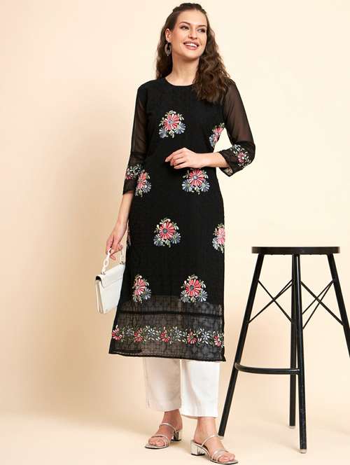 - » black three quarter sleeve straight kurta