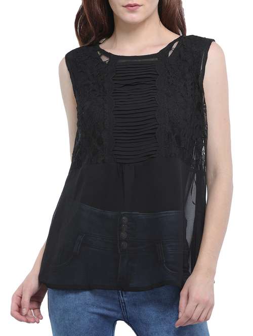 pin tucks detail lace trim top - 15360818 - Very Small Image - 1