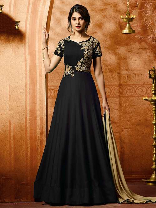 embroidered semi-stitched anarkali suit - 15288238 - Very Small Image - 1