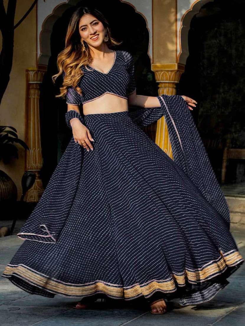 navy blue flared lehenga choli set with dupatta