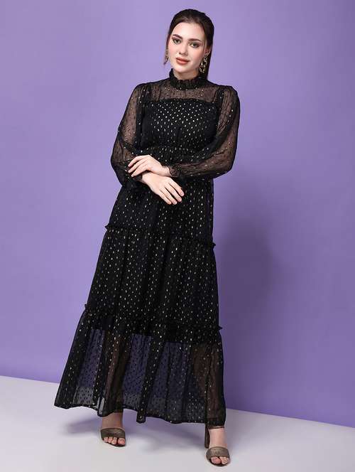 black georgette tiered dress
