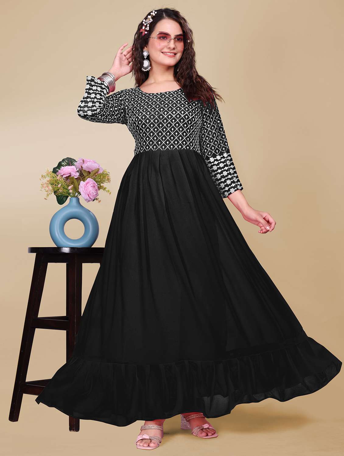 - LimeRoad brings to you the classic range of georgette ethnic dresses handcrafted with embroidered art to give you an effortless traditional look.