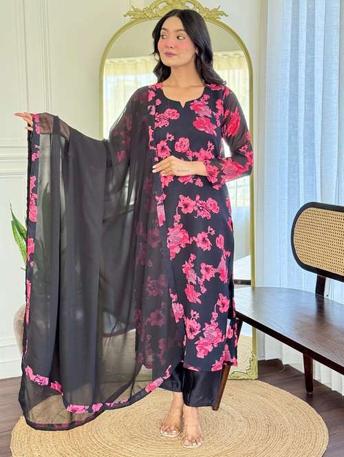 - Find gorgeous sets of ethnic wears in trending designs in black colors suitable for festive wear of occasions.