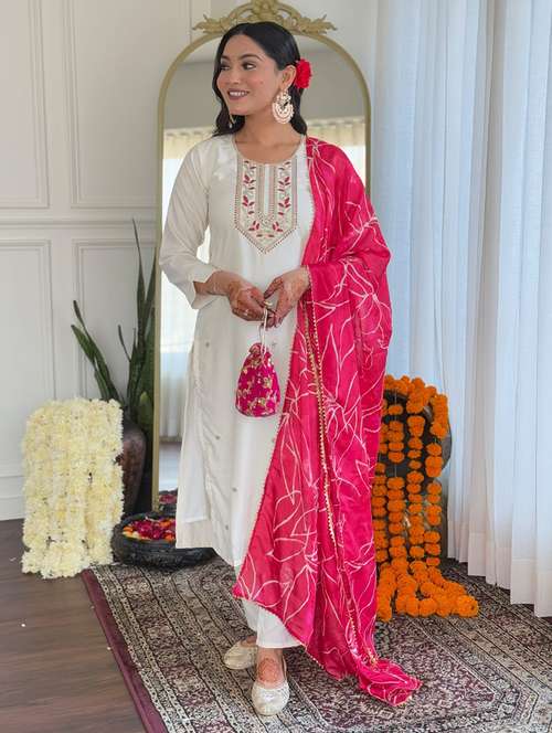 women three quarter sleeve kurta and pant with dupatta
