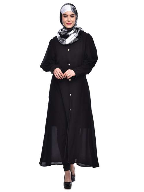 solid buttoned cloaks & abaya - 16040974 - Very Small Image - 1