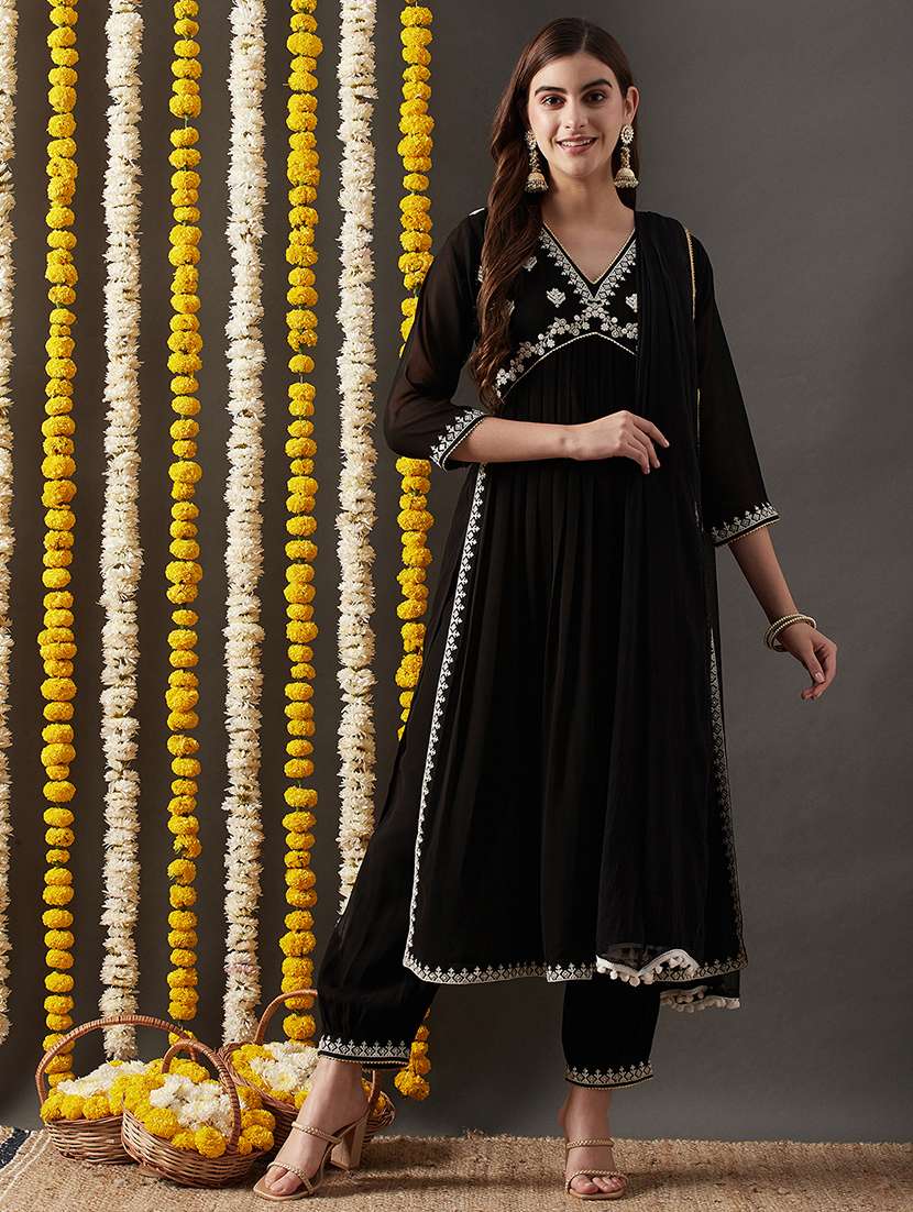 - Find gorgeous sets of ethnic wears in trending designs in black colors suitable for casual wear of occasions.