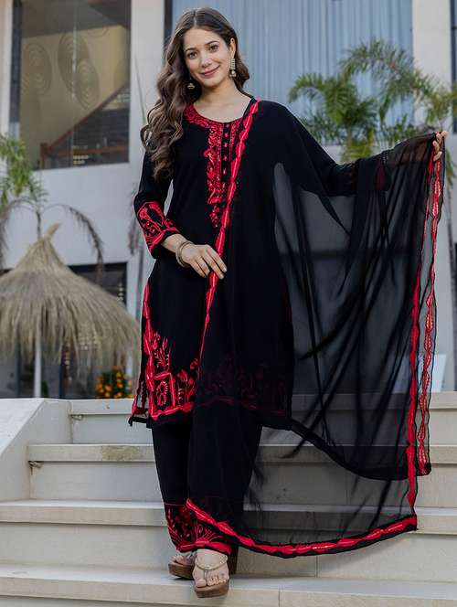- Find gorgeous sets of ethnic wears in trending designs in black colors suitable for festive wear of occasions.