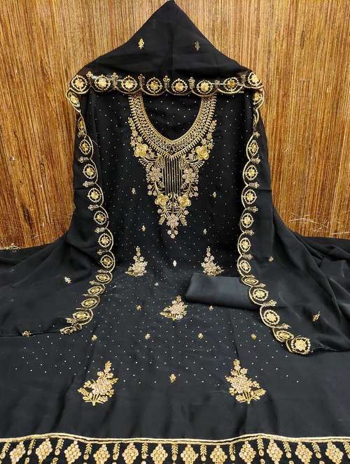 • Look ultra gorgeous in unstitched suits from Leeli Peeri Designer and grab these beautiful suits in black colour.