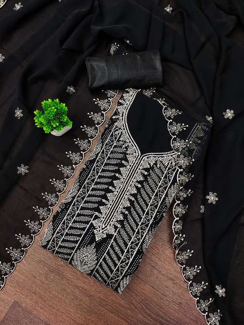 - Look ultra gorgeous in unstitched suits from Leeli Peeri Designer and grab these beautiful suits in black colour.