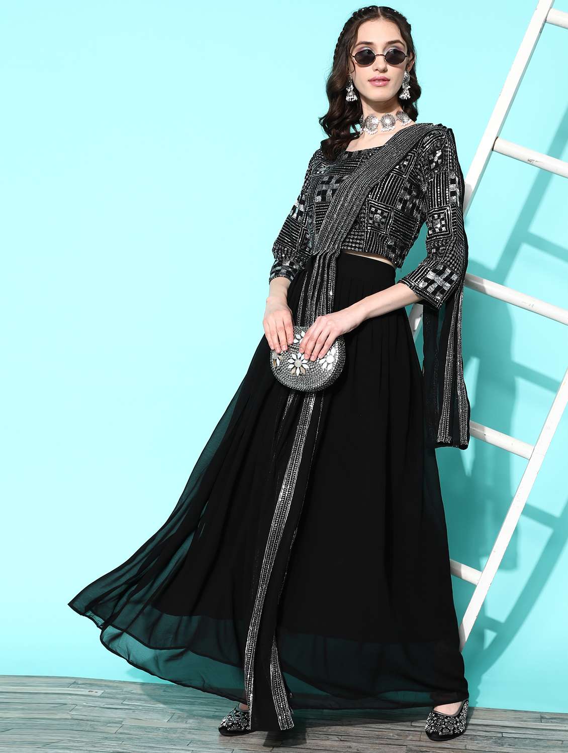 - » women black stitched lehenga choli with dupatta