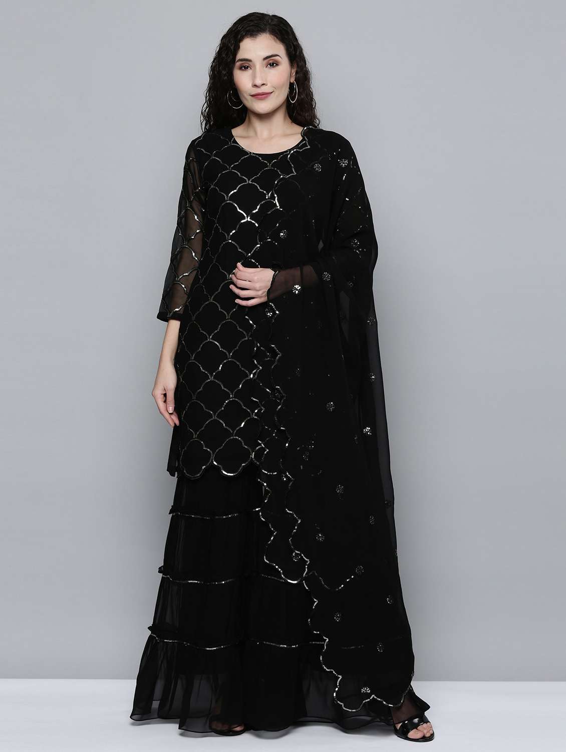 women black kurta sharara set with dupatta - 21371009 - Very Small Image - 1