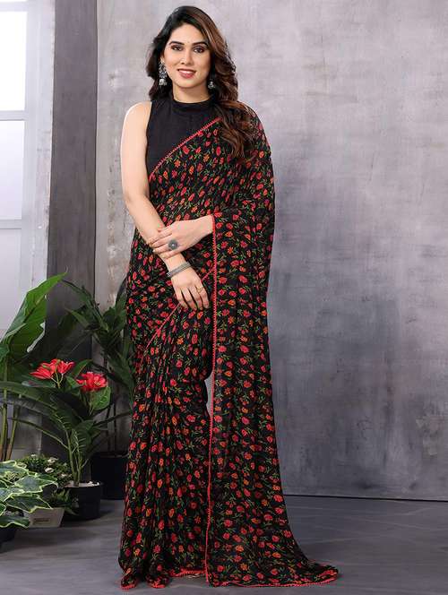 - » women black floral printed saree with blouse