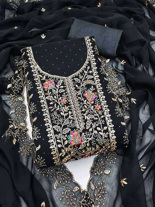- Look ultra gorgeous in unstitched suits from Peachmode and grab these beautiful suits in black colour.