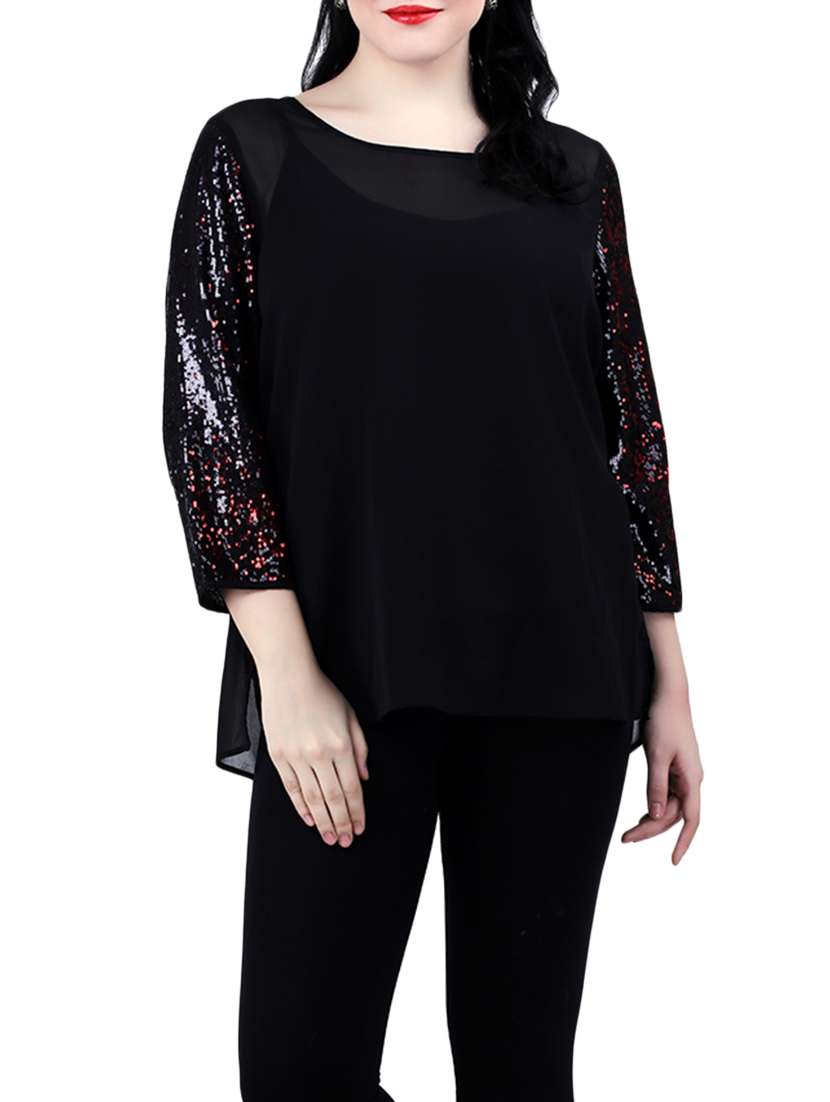 - » sequined sleeved plus top