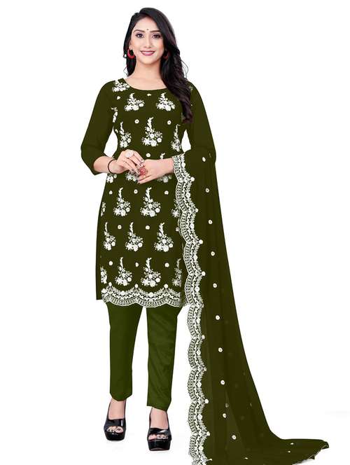 women solid with work unstitched suit set - 21266599 - Very Small Image - 1