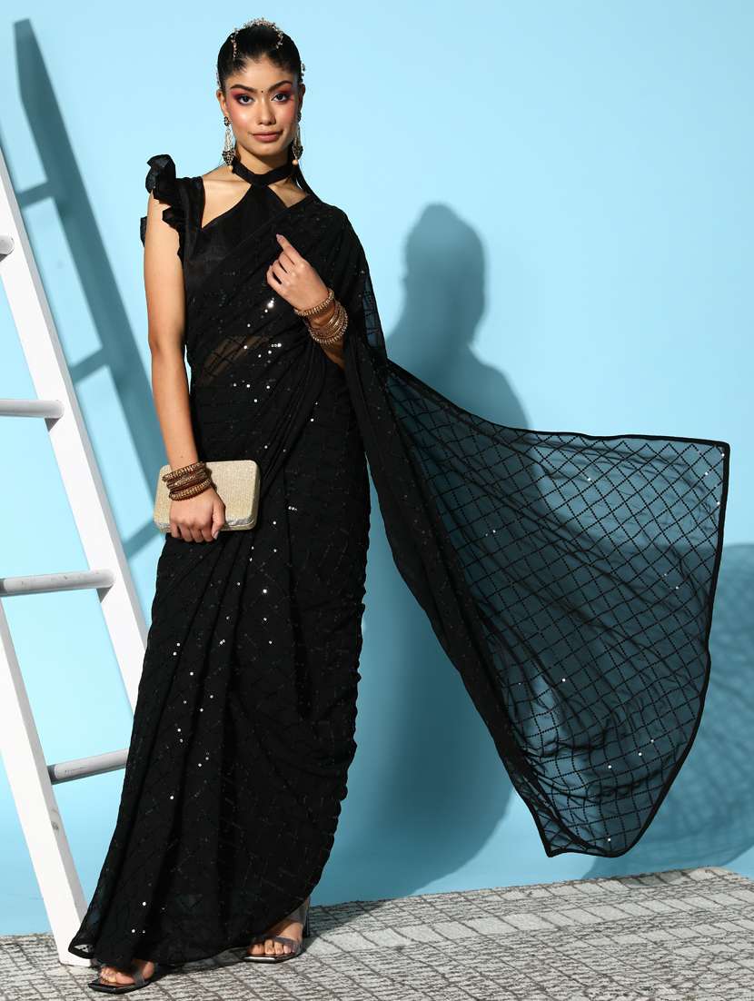 Riva Enterprise Women's Georgette Sequin Embroidered Saree