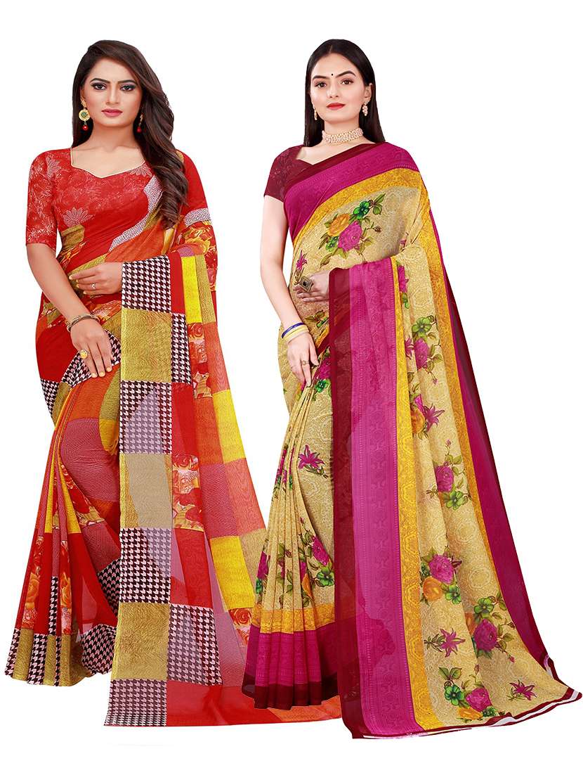 women pack of 2 casual wear combo sarees with blouse - 21456303 - Very Small Image - 1