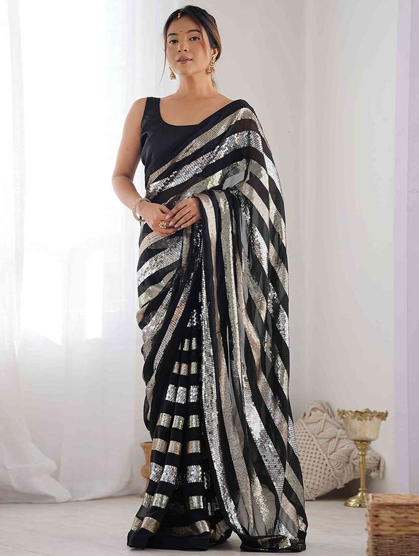 women solid with work embellished saree with blouse - 22275448 - Very Small Image - 1