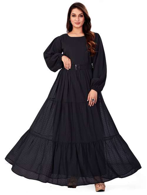 - » women black solid round neck tiered dress